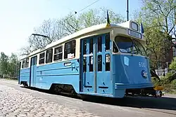 SM91 is the Norwegian designation for a tram type which operated on the Oslo Tramway until 2002. The trams were imported from Sweden, where they had originally run on the Gothenburg Tramway under the designation M25. The trams were originally delivered to the Gothenburg Tramway between 1958 and 1961. A total of 36 trams were eventually exported to Oslo, Norway, numbered 264 to 299.[1]