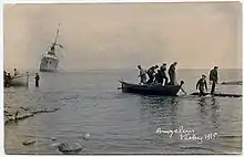 Of the fatalities, 26 of the German sailors were buried the same evening the battle was fought in a mass grave just east of Östergarn Church. One member of the crew had fallen overboard and could not be found. Two of the crew members who died during transportation to Roma were buried at Björke cemetery. The surviving German crew were interned, first in Roma, then at Blåhäll in Tofta.[16] The Swedish salvage company Neptun refloated Albatross on 23 July and towed her to Fårösund before proceeding to Oskarshamn, where she was interned for the duration of the war. Sweden returned Albatross and her crew to Kiel in January 1919; there, she was formally decommissioned on 23 January. On 21 March, she was stricken from the naval register and thereafter sold for 900,000 marks and broken up for scrap in Hamburg.[1][17][18]