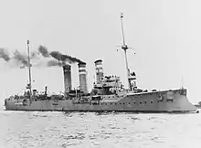 SMS Berlin ("His Majesty's Ship Berlin")[lower-alpha 1] was the second member of the seven-vessel Bremen class of light cruisers, built for the German Kaiserliche Marine (Imperial Navy) in the early 1900s. She and her sister ships were ordered under the 1898 Naval Law that required new cruisers be built to replace obsolete vessels in the fleet. The design for the Bremen class was derived from the preceding Gazelle class, utilizing a larger hull that allowed for additional boilers that increased speed. Named for the German capital of Berlin, the ship was armed with a main battery of ten 10.5 cm (4.1 in) guns and had a top speed of 22 knots (41 km/h; 25 mph).