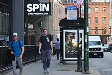 The first SPiN franchise outside of New York opened in 2010 in Milwaukee[5] (the table tennis bar at this location is now no longer affiliated with the SPiN brand[6]). In 2011, a location opened in Toronto[7] and in 2013 a location (containing a gold-plated ping pong table) opened in Dubai[8] (it later closed due to Dubai's more conservative drinking norms[9]). Further locations have opened (or are planned to open) in Austin,[10] Chicago,[6] Los Angeles,[11] Philadelphia,[12] and San Francisco.[9] As of 2017, there are seven current or planned SPiN locations in the U.S. and Canada.[13]