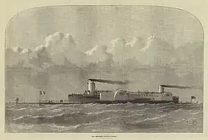 On 21 October 1874, she was driven ashore at Hull in a gale. She was refloated and found to be undamaged.[3] The ship sailed from Dover to Calais on a private trial in April 1875. On arrival, it sustained damage to a paddle-wheel when it hit the pier at Calais, due to its failure to answer to the helm at slow speed. The first and only public voyage took place on 8 May 1875, the ship sailing with the swinging cabin locked (some observers suggested due to its serious instability,[4] although Bessemer ascribed it to insufficient time to fix the previous damage).[2] The ship was operated by the London, Chatham and Dover Railway.[5] After two attempts to enter the harbour, she crashed into the Calais pier again, this time demolishing part of it.[4]