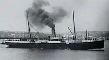 It was reported that at the time of departure, whilst the weather was blustery, it was not sufficient for Capt. Hill to decide against making passage.[23] The Fenella departed Liverpool on time and, exiting the Victoria Channel, she passed the Bar Light Ship, whereupon she set a course for Douglas. As the Fenella cleared to the northwest of Liverpool Bay, the weather worsened, and what was reported to be "one of the worst storms in many years" developed, with the wind blowing from the northwest, creating associated sleet and hail squalls.[23] Reports stated that passengers on the deck were advised by the ship’s crew to go below due to the severity of the weather, but several passengers declined to do this, some seeking shelter on a covered seat aft of the funnel. According to a witness, Mr. Tom Wood, two passengers returned to the deck, (Mr. John Mc Combe and a young woman, Miss Janie Clucas), who joined three men believed to be the victims, sitting on the covered seat. Wood then stated that a wave crashed over the port beam of the Fenella with such force that it swept away the seat, dispersing its occupants, with the result that Mc Combe and Miss Clucas were washed up opposite the saloon door.[23] Having both sustained injuries, they were taken into the saloon, where treatment was administered, and they stayed in the saloon for the remainder of the voyage.