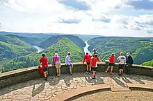 On July 23, 2016, the Treetop Walk Saarschleife opened to the public with an observation tower soaring above the historically popular vantage point known as "the Cloef."[5] From the observation tower, visitors can see much further than from the Cloef including the Mettlach parish church as well as the power plant at Ensdorf.