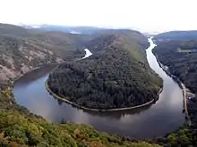 The Saarschleife, also known as the Great Bend in the Saar at Mettlach, is a water gap carved by the Saar River through a quartzite layer and today one of the most well-known tourist attractions of the Saarland.