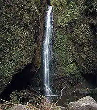 Sacred Falls State Park (traditionally named Kaliuwaʻa in Hawaiian) is a closed state park located in Hauʻula on the North Shore of the Hawaiian island of Oʻahu. It has been closed since the rockfall that occurred on Mother's Day in 1999. Although people caught entering the park are subject to hefty fines, hikers continue to trespass into the park.[1] The park encompasses Kaluanui gulch and the waterfalls at its end. It is a wahi pana[2] in the district (moku) of Koʻolauloa, with much associated Hawaiian lore: