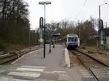 It is served by Île-de-France tramway Line 13 Express which opened in 2022 largely using track of the existing Grande Ceinture line, towards Saint Cyr and Saint-Germain-en-Laye.
