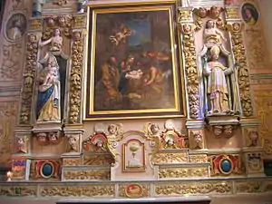 The altarpiece above the altar of Saint-Sacrement, today the altar of Sacré-Coeur, was the work of Gabriel Carquain and was originally made in 1662 for the master-altar. It was placed in its present location in 1724 but after various additions. The subject of the altarpiece is the adoration of Jesus by the angels and a painting depicts the nativity and in the corners of the altar are statues of the Virgin Mary and Saint Thégonnec.