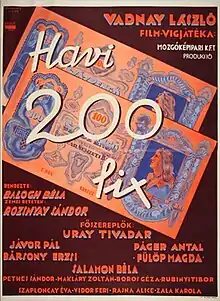 Salary, 200 a Month (Hungarian: Havi 200 fix) is a 1936 Hungarian comedy film directed by Béla Balogh and starring Pál Jávor, Erzsi Bársony and Antal Páger.[1] Location shooting took place around Eger in Northern Hungary. It was one of the most successful films at the Hungarian box-office.[2]