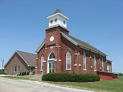 Salem Methodist Episcopal Church, also known as Salem United Methodist Church, is a historic United Methodist church in Helt Township, Vermillion County, Indiana. The church was built in 1878 to house Vermillion County's first Methodist congregation, which was established in the 1820s. The brick church was designed in the Gothic Revival style. The front of the church features a brick tower topped with a truncated roof and a bell tower. The church's windows and front entrance have a pointed arch design.[2]