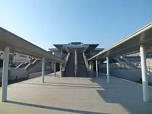 Salhane is a station on İZBAN's Northern Line. The station is 4.56 km (2.83 mi) away from Alsancak station. Salhane opened in 2001, and was serviced by the Basmane-Aliağa Regional and the Alsancak-Çiğli Commuter Line. Service was suspended between 2006 and 2010, where the station was rebuilt. Service re-opened on December 5, 2010, with the inauguration of İZBAN's Northern Line.[1]
