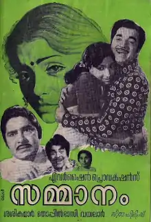 Sammanam (transl.Gift) is a 1975 Indian Malayalam-language romantic drama film, directed by J. Sasikumar and produced by Thiruppathi Chettiyar. The film stars Prem Nazir, Madhu, Jayabharathi and Sujatha. It is a remake of the 1959 Tamil film Kalyana Parisu.[1]
