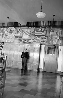 Samuel Gompers High School is the site for a notable Federal Art Project mural created in 1936 by Eric Mose. The three-panel, 600-square-foot[3]:141 fresco, Power,[4] was created in the school library. The work was described in an April 1938 article in The New York Times:[5]