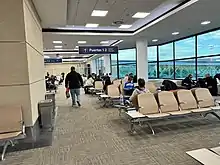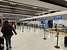 San Carlos de Bariloche Airport (Spanish: Aeropuerto de San Carlos de Bariloche) (IATA: BRC, ICAO: SAZS), also known as Teniente Luis Candelaria Airport,[5] is an international airport serving the city of San Carlos de Bariloche, Río Negro, Argentina. The airport covers an area of 1,810 hectares (4,500 acres; 7.0 sq mi) and has a 12,000-square-metre (130,000 sq ft) terminal; it is located 13 kilometres (8.1 mi) out of the city.[2]