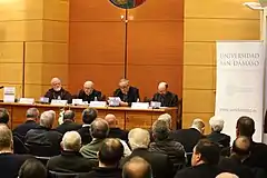 On December 22, 2011, the theologian Javier Maria Prades Lopez was appointed first rector of the Ecclesiastical University San Damaso, position of which takes possession on January 27, 2012. In 2012 is erected the new institute superior of Religious Sciences with two sections: face-to-face and distance. It is the result of the integration of the remote SCCRR San Agustin to the ISCCRR San Damaso.[2]