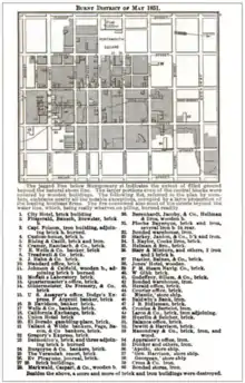 - ↑ Although most common sources agree on a loss figure in the $10-12 million range, a total loss of $20 million is printed on a contemporaneous lithographic illustration of the fire.