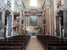 The interior has a paintings of St Ignatius of Loyola by Luca Giordano, Family of the Virgin by Nicola Malinconico, a St Anne and Holy Family by Francesco di Maria.