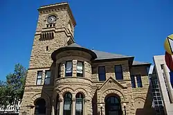 The museum's 33,000-square-foot historic wing was originally designed by federal architect Willoughby J. Edbrooke.[5] Built from local Greystone Quarry sandstone in 1892, the structure was designed to serve as the main post office for the city of San Jose.[9][4] It is an example of the Richardsonian Romanesque architecture style.[10] The original steeple and clock tower were damaged in the 1906 earthquake.[9] From 1937 to 1969 the historic wing served as the city of San Jose's library. The building was then converted by the Fine Arts Gallery Association,[11] a group of community members and San Jose State University art professors, who then reopened it as the Civic Art Gallery. In 1972 the building was named a California Historical Landmark (#854),[12] and in 1973 it was added to the National Register of Historic Places.