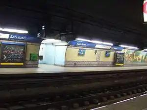 San Juan is a station on Line C of the Buenos Aires Underground. The station was opened on 9 November 1934 as part of the inaugural section of the line, from Constitución to Diagonal Norte.[1]