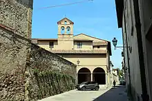 A Benedictine order church of this name was founded outside the city walls in 1350, but the present church, with its arcaded portico, was built in 1556. It was originally affiliated with the Confraternity of Santa Croce. The church was suppressed in the 19th century, and for many years used as a part of an orphanage, where the children learned how to weave textiles.
