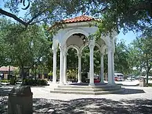 Designed as the commercial heart of San Marco, the square had declined seriously by the 1970s, with many businesses closing. The original, compass-themed fountain was demolished. In the 1990s, the City of Jacksonville undertook a major renovation and streetscaping project, which included restoring the fountain with three lion statues inspired by the Piazza San Marco.[3][25] Since then, the square has become a popular commercial destination with many shops, restaurants and bars. In 2013, the square underwent another renovation project that rerouted the streets and expanded the small park in the center, named Balis Park, into a larger pedestrian green space.[29][30]