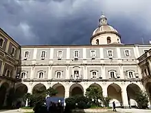 The Clerics Regular Minor, or Adorno Fathers, known in Italy as Caracciolini after their founder, Saint Francesco Caracciolo, and in Catania as Minoriti was an order of priests and brothers, approved by the pope in 1588, and mainly dedicated to pastoral care of the infirm and needy. They first came to Catania in 1625, on the invitation by the bishop Innocenzo Massimo. In 1628, they were assigned an old church dedicated to St Michael Archangel, located on what is now via Aetna. In 1630, the aristocrat Giambattista Paternò endowed the order with his inheritance. Like most of the town, the 1693 earthquake levelled the prior church, and the minorites commissioned a new church and monastery. The reconstruction was patronized by father superior Bartolomeo Asmundo, who survived the earthquake. The monastery was suppressed in 1866, and the property occupied by the deputies of the provincial council and the prefecture.