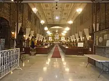 Located at the foot of the image of Saint Michael on the main retablo is a relic of the Apparition of Saint Michael in Italy. Recalling the history of the said apparition, a herdsman named Gargan was pasturing his heard in the area when a bull wandered off into the mountains and went inside a cave. After locating the cave where the bull sought refuge, a man shot an arrow inside the cave but mysteriously bounced back and shot the one who released the arrow. With the puzzling event, the people sought the help of the local bishop. It is said the Saint Michael presented himself to the bishop and ordered the cave to be consecrated under his name.[4][5][6] It is now known as the Sanctuary of Monte Sant'Angelo. Relics associated with the said apparition, such as that found inside this church, may have been rocks chipped off from the cave or pieces of cloth that has touched it.[4]