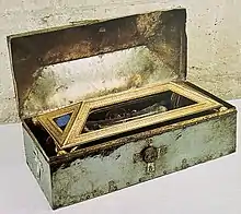 The actual remains of Augustine, however, were no longer identified. Then, on October 1, 1695, illiterate stonemasons working in the crypt altar removed paving blocks and discovered a marble box. Within it were other boxes; in the third box were fragments of wood, numerous bones and bone fragments, and glass vials. Some of the workers later claimed to have seen the name "Augustine" written in charcoal on the top of the box. A factor complicating the authentication of the remains was that San Pietro in Ciel d'Oro was shared by the two Augustinian religious orders in bitter rivalry. The controversy on the authenticity of the bones resulted in broadsides, pamphlets and books. In 1728, Pope Benedict XIII's intervention in Pavia resulted in his approval of the authenticity of Augustine's bones discovered in the church of San Pietro in Ciel d'Oro. (Stone, Harold Samuel (2002). "St. Augustine's Bones: A Microhistory." pp. 90–93)