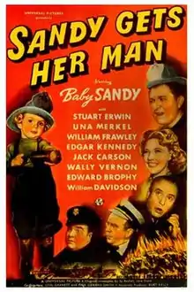 Sandy Gets Her Man is a 1940 American comedy film directed by Otis Garrett and Paul Gerard Smith and written by Sy Bartlett and Jane Storm. The film stars Baby Sandy, Stuart Erwin, Una Merkel, Edgar Kennedy, William Frawley, Edward Brophy, Wally Vernon, Jack Carson and William B. Davidson. The film was released on November 8, 1940, by Universal Pictures.[1][2][3]