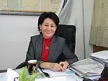 Sanjaasuren Oyun (Mongolian: Санжаасүрэнгийн Оюун), also transcribed S. Oyun, is a Mongolian politician and geologist. She is the leader of the Civil Will Party, is the former Minister of Environment and Green Development, and has been a Member of Parliament of Mongolia (State Great Khural) since 1998. She is also a former Minister of Foreign Affairs and is the current head of the Zorig Foundation. Now she is new head of Global Water Partnership GWP. In 2003, Eisenhower Fellowships awarded Oyun a fellowship program in the United States. In 2006, Oyun was selected as a Young Global Leader (YGL) by the Davos World Economic Forum (WEF). She has been an active member of the YGL community since. On June 24, 2014, Oyun was elected the first president of the United Nations Environment Assembly (UNEA).
