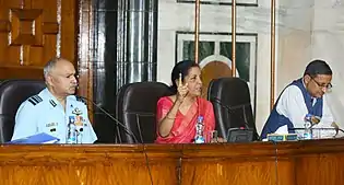 14. @SpokespersonMoD (23 August 2019). "Defence Secretary @drajaykumar_ias felicitating his predecessor Shri Sanjay Mitra at his farewell in New Delhi, today" (Tweet) via Twitter.