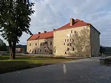 During the reign of King Władysław Jagiełło, his wedding with Elisabeth of Pilica took place at the castle on May 2, 1417.[3] The town and district authorities with a castellan at the top had their seat at the Sanok castle. In 1425, it was established the Higher Court of German law at the Sanok Castle. It was also a residence of the King's fourth wife Sophia of Halshany until her death in 1461.[3] Queen Bona Sforza ordered the rebuilding of the Gothic castle in the Renaissance style between 1523-1548.[2] Between 1555-1556, the castle was the seat of Isabella Jagiellon, Queen of Hungary, after her escape from Transylvania.[3] At the end of the 16th century, the castle underwent further expansion: the south wing was built at that time. At the turn of the 18th century the north wing was added. During the Napoleonic Wars, the castle was successfully defended against the Austrian forces by General Franciszek Ksawery Krasicki, who was the leader of the anti-Austrian uprising in the Sanok Region.