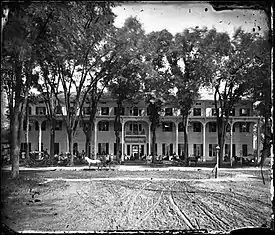Eventually the hotel was expanded so that it had 162 feet (49 m) of frontage, the two wings 152 feet (46 m) deep. The hotel then had 180 rooms and accommodated 300 guests. A white picket fence wrapped around the property, bordering the sidewalks.[2]