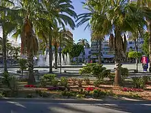 Part of Sant Antoni's harbourside promenade, Passeig de ses Fonts, is an area which was developed in the early 1990s to improve the appearance of the town. There are many plants, including palm trees and rubber plants, as well as large fountains, which are illuminated by night. Across the square are a host of restaurants and cafés offering a view over Sant Antoni Bay. It is also the best place from which to watch the massive fireworks display which celebrates the fiesta of Saint Bartholomew on 24 August.