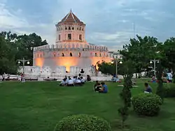 The park houses the Santichaiprakarn Throne Hall and Phra Sumen Fort, built during the reign of King Phutthayotfa Chulalok (Rama I) since early Rattanakosin era, and the district's last mangrove apples, after which the area Bang Lamphu is named (mangrove apple called in Thai lamphu).[2]