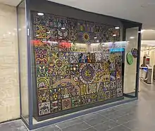 Pensamiento y alma Huichol was created in 1997 Palais Royal-Musée du Louvre station as part of the RATP Group - Mexico City Metro alliance. This is his most renowned and talked about work, which represents Huichol deities, ancestors, myths, flora and fauna on a horizontal tripctic of the underground, the earth and the sky. The work is composed by 80 boards and elaborated with two million beads of 2 millimeters each one. It is located at the Palais-Royal Musée du Louvre towards the Carrousel du Louvre. On this work, researcher Miguel Gleason comments on his book México insólito en Europa: “Its perhaps the most impressive and detailed work in Europe, composed by more of 2 million beads that shows the cosmogony of that community (Huichol people)".[3]