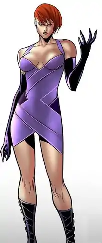 During the "Hunt for Wolverine" storyline, Sapphire Styx is among the villains with Viper that attack Kitty Pryde's group as the latest member of the Femme Fatales. She crashed Psylocke's battle with Mindblast where she started draining Psylocke's lifeforce.[10] Viper later talks with a representative of her client as she mentions that Sapphire Styx is still draining off of Psylocke just like she did with Magneto ever since the client gave Sapphire to her. The representative tells Viper that Sapphire Styx tends to prefer the life force of the mutants and tells Viper to focus on delivering the package as all that they are serves the will of Soteira. As Snake Whip asks if they are going to ignore Sapphire Styx' vampiric appetite, Viper says that they have to obey the representative's orders and "let the @#$%& feed." Meanwhile, Sapphire Styx still has Psylocke in her possession as she states that Psylocke's soul is magnificent as it could keep her revitalized for years only to sense that she is dead. As Storm's claustrophobia brings a rainstorm to Madripoor, Sapphire Styx comments that she hasn't felt rain that primal for decades. As Sapphire gloats to Psylocke that she died to soon, she is surprised to see what appears to be Wolverine in his Patch alias sitting near Psylocke as he plans to dish out the proper punishment on her.[11] Viper and Snake Whip check up on Sapphire Styx who claims that she can see Wolverine's Patch alias even though she is the only one who can see him. Kitty Pryde, Domino, and Jubilee catch up to Sapphire and Kitty figures out that Psylocke is playing a mind trick on her. Psylocke's voice is heard quoting "NO MORE SOULS" as Sapphire's body begins to shatter.[12] Inside Sapphire Styx's body, Psylocke's soul sliver fights past the other souls where she finds a soul sliver of Wolverine. With help from Wolverine's soul sliver, Sapphire was overpowered from within and shatters. Her remaining soul power enabled Psylocke to create a new body for herself.[13]