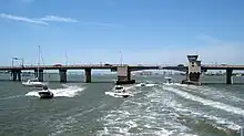 Sarasota Bay is a lagoon located off the central west coast of Florida in the United States. Though no significant single stream of freshwater enters the bay, with a drainage basin limited to 150 square miles in Manatee and Sarasota counties,[1] it is generally treated as an estuary, with three "passes" or inlets, giving access from the Gulf of Mexico. Its source of freshwater has been increased from natural historical levels by urban runoff.[2]
