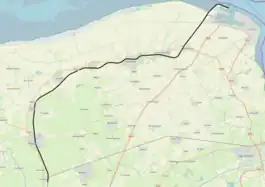 The Sauwerd–Roodeschool railway is a railway line in the Netherlands running from Sauwerd to Roodeschool, passing through Winsum, Warffum and Uithuizen. The line was opened in 1893.[1] Although the railway originally started in Sauwerd, train services have always started and terminated in Groningen. At 28 March 2018, an extra branch from Roodeschool to Eemshaven was opened.