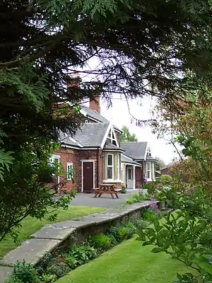 Sawdon railway station was situated on the North Eastern Railway's Pickering to Seamer branch line in North Yorkshire, England. It served the village of Brompton-by-Sawdon and to a lesser extent Sawdon itself. The station was named Sawdon to distinguish it from an existing station called Brompton (on the Leeds Northern Railway), near Northallerton, also in North Yorkshire.[1][2] The station opened to passenger traffic on 1 May 1882, and the last trains ran on 3 June 1950.[3] Sawdon was furnished with one platform, which had the station building on the northern side of the running line, and a small goods yard beyond the station building with an east facing connection to the main railway line.[4] The goods yard had a crane capable of lifting 1-tonne (1.1-ton), and was equipped to handle a variety of goods including live stock.[5]