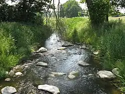 The height difference from the source to the mouth is about 43 metres (141 ft) – from 58 metres (190 ft) to 15 metres (49 ft) above sea level.