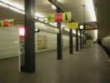 It was built in 1930 by Alfred Grenander. There was a total damage on 7 May 1944, and it was repaired by 1946. The western entrance was closed in 1959, and only eastern entrance exists. In 2003 the station was renovated again and orange/red panels were attached on the walls.[2]