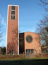 There are also two Evangelical/Protestant churches – the Pauluskirche and the Jakobuskirche (Jacobus Church) – two Catholic churches – the Heilig-Kreuz-Kirche and the St. Maria Rosenkranzkirche (St. Mary's Rosary Church) – and two mosques (Fatih Camii and Takwa). The Reformed Protestant Gnadenkirche (Church of Mercy), built in 1960, was completely pulled down apart from its bell tower due to financial difficulties, to make way for a day care centre for children.[1]