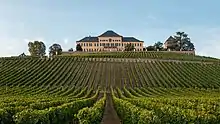 Schloss Johannisberg is a castle and winery in the village of Johannisberg to the west of Wiesbaden, Hesse, in the Rheingau wine-growing region of Germany. It has been making wine for over 900 years.[1] The winery is most noted for its claim to have "discovered" late harvest wine.[2] The palace is a venue of the Rheingau Musik Festival, made available by co-founder Tatiana von Metternich-Winneburg.