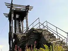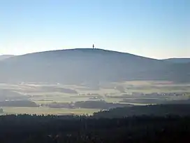 Schneeberg (1,051 m above sea level (NN)) is the highest mountain in the Fichtel Mountains, a mountain range in Upper Franconia in northeast Bavaria, Germany. It can be readily identified from a distance by its squat tower - a relic of the Cold War. The summit comprises a jumble of granite rocks and a rock pillar (Felsburg) on which the Backöfele observation tower stands and is still dominated by the relics of military installations including its Cold War listening post.