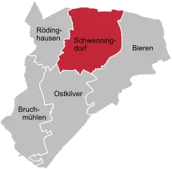 Schwenningdorf is a village in the parish of Rödinghausen in the northeastern part of the German federal state of North Rhine-Westphalia. Until 1968 Schwenningdorf was an independent parish in the Amt of Rödinghausen. The village was first mentioned in the records in 1088.