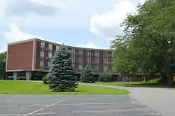 Schwietermann Hall is a historic dormitory building located on the campus of Saint Joseph's College in Marion Township, Jasper County, Indiana. The International Style building was built in 1962, and is a four-story, Y-shaped building composed of reddish-orange brick with concrete trim. The upper floors of the wings are supported by large, tapered concrete piers. A two-story connector connects the dormitory building and the main chapel on campus.[2]: 4–5