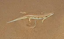 - ↑ Wagner, P.; Wilms, T.; Niagate, B.; Böhme, W.; Mateo, J.A.; Disi, A.M. (2018). "Scincus albifasciatus". IUCN Red List of Threatened Species. 2018: e.T198420A2526161. doi:10.2305/IUCN.UK.2018-2.RLTS.T198420A2526161.en. Retrieved 18 November 2021.