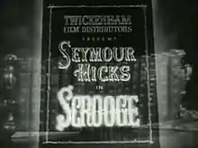 Scrooge is a 1935 British Christmas fantasy film directed by Henry Edwards and starring Seymour Hicks, Donald Calthrop and Robert Cochran. The film was released by Twickenham Film Studios and has since entered the public domain. It was the first sound film of feature length to adapt the Charles Dickens novella A Christmas Carol, and it was the second cinematic adaptation of the story to use sound, following a now-lost 1928 short subject adaptation of the story.[1][2] Hicks stars as Ebenezer Scrooge, the skinflint who hates Christmas and is visited by a succession of ghosts on Christmas Eve. Hicks had previously played the role of Scrooge on the stage regularly, starting in 1901, and in a 1913 British silent film version.