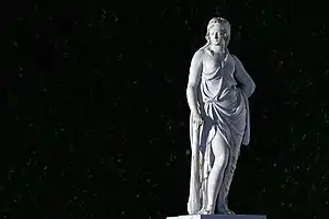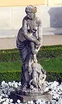 | 4 | Ceres and Dionysus | Joachim Günther | Ceres was the goddess of agriculture, marriage, and death, representing the generative power of nature.[7] She is shown with Dionysus, the god of the grape harvest, winemaking, and wine, and of ecstasy. He was the son of Zeus and Semele.[8] | ![]() |
