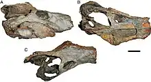 The most notable features are large temporal fenestrae,[11] a narrow snout, and a high parietal crest.[1]